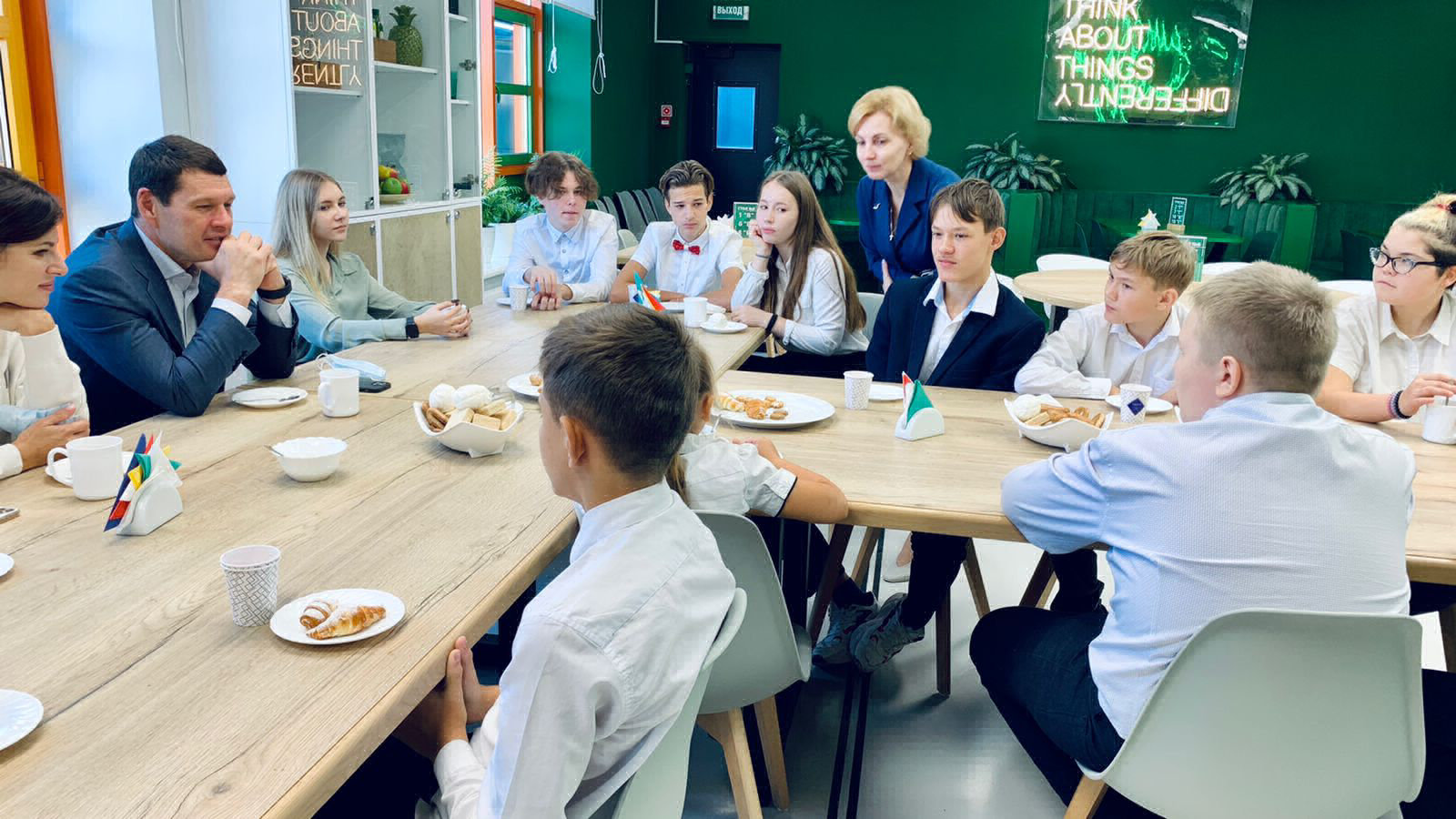 На прошедшем завтраке присутствовал председатель совета директоров группы компаний «Абсолют» А.А. Светаков. Ребята в неформальной обстановке, как говорится, «без галстуков», рассказывали о школьной жизни, задавали вопросы, вносили предложения. Например, начинать занятия по вождению с 15 лет, открыть клубы по программированию и астрономии, сделать звонки музыкальными.