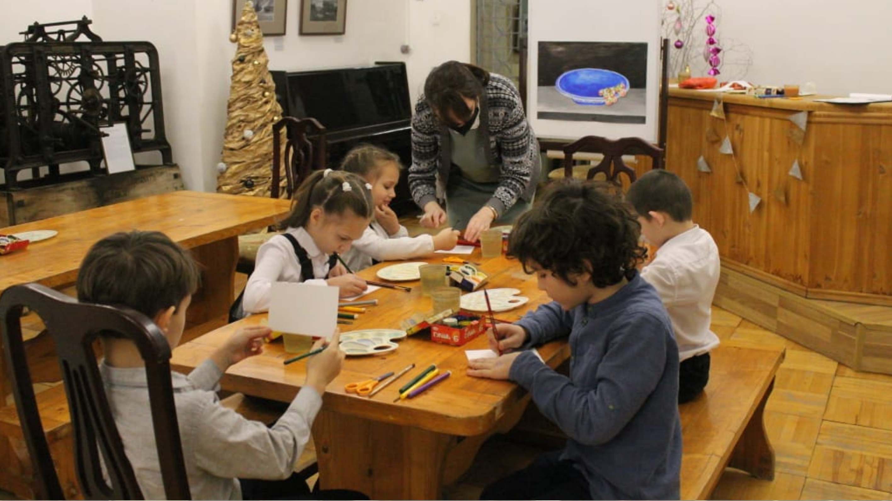 А также посетили первое занятие цикла «Раскуси натюрморт». В течение трех занятий им предстоит путешествовать по Голландии на машине времени, в игровой форме знакомиться с живописью нидерландских мастеров, учиться рассматривать картины. Особое внимание ребята вместе с сотрудниками музея и учителем изобразительного искусства Волковой К.С. уделят жанру натюрморта, создадут свои необычные рисунки в трёх разных техниках с помощью красок и других графических, а также подручных материалов.