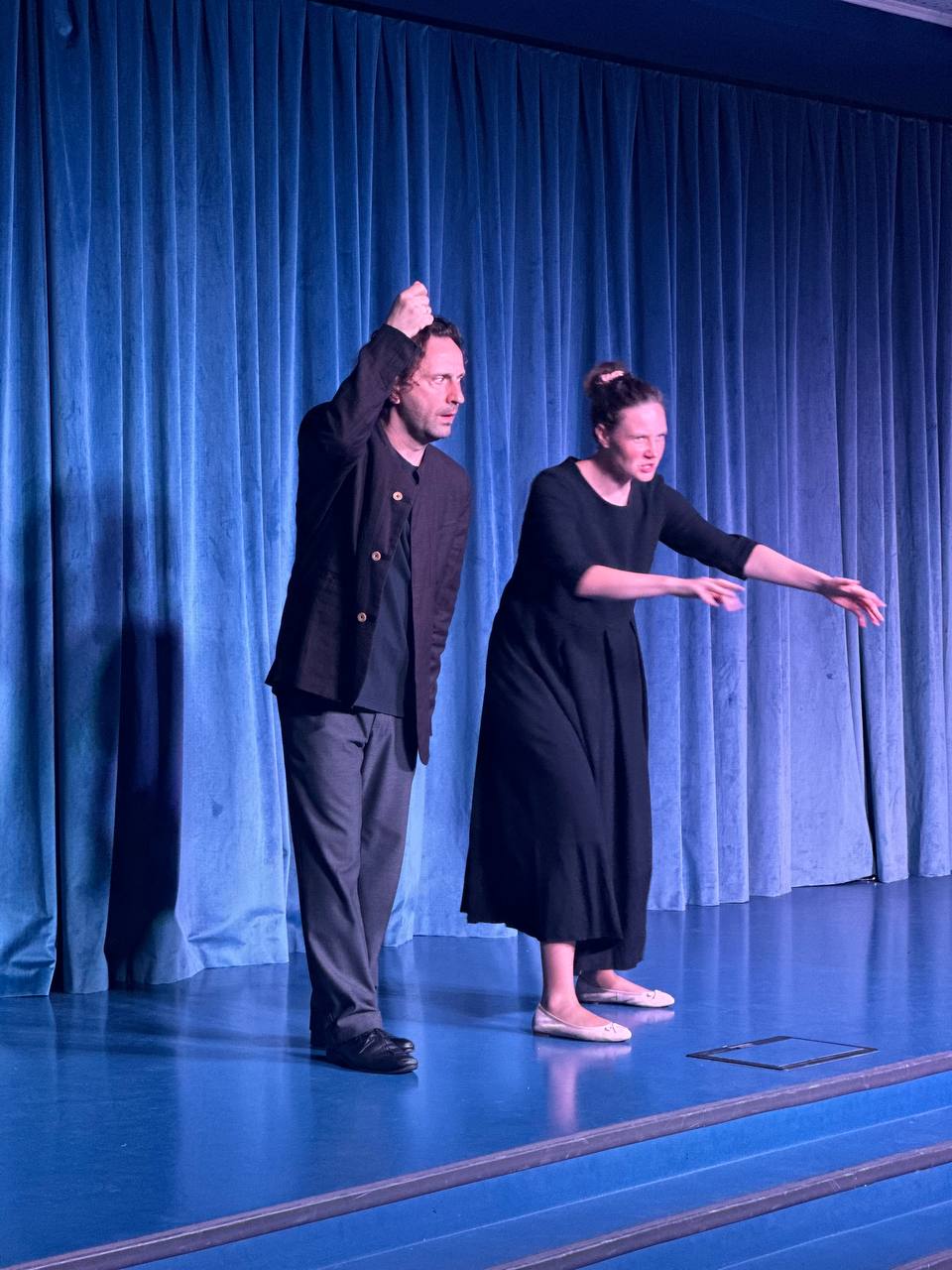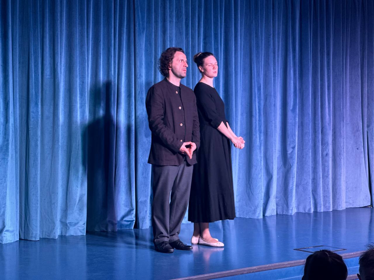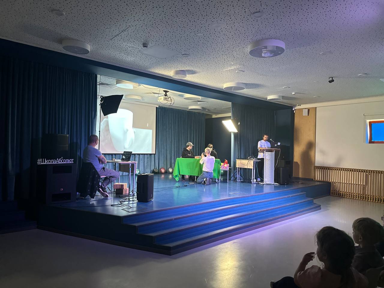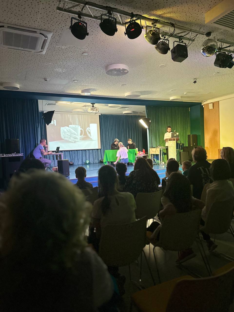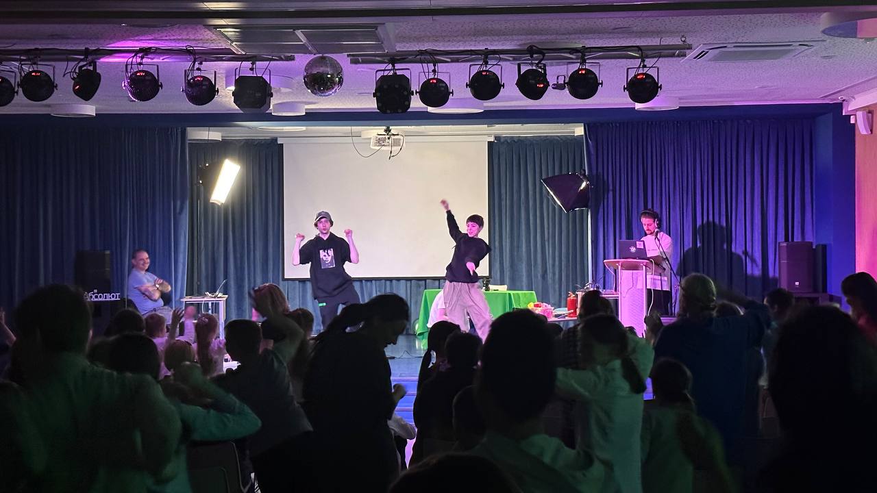 Каждый вечер школа превращается в центр притяжения, принимая родителей, педагогов и учащихся из других школ, а также друзей из Юны. Вечером школьная сцена преображается в настоящие театральные подмостки. Вчера мы посетили спектакль «Достоевский. Сторителлинг», где только двое актеров - Елена Горина и Александр Горелов - представили множество героев из жизни и творчества Федора Михайловича, используя только свои мимические, вокальные и телесные возможности. Они умело передавали эмоции, заставляя нас представлять, смеяться, горевать и сопереживать.