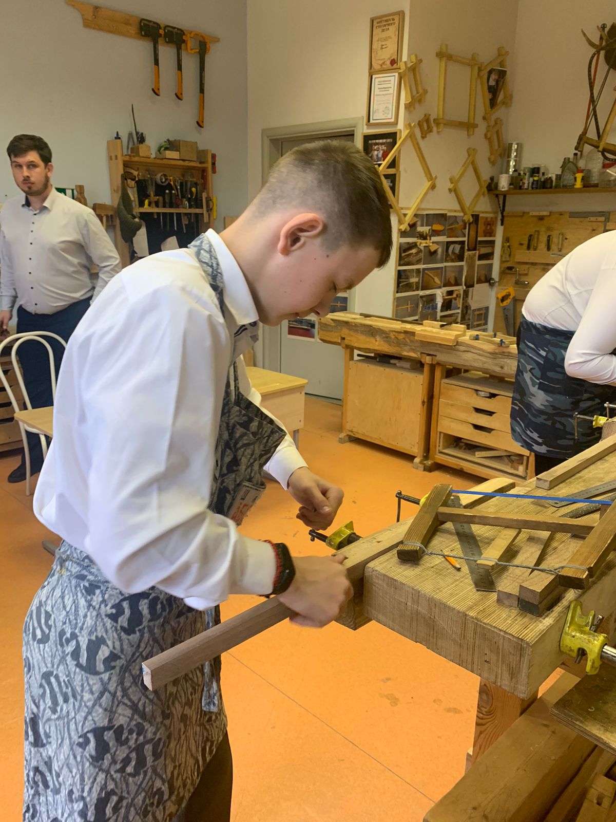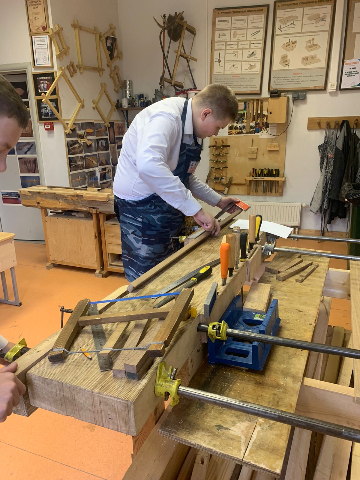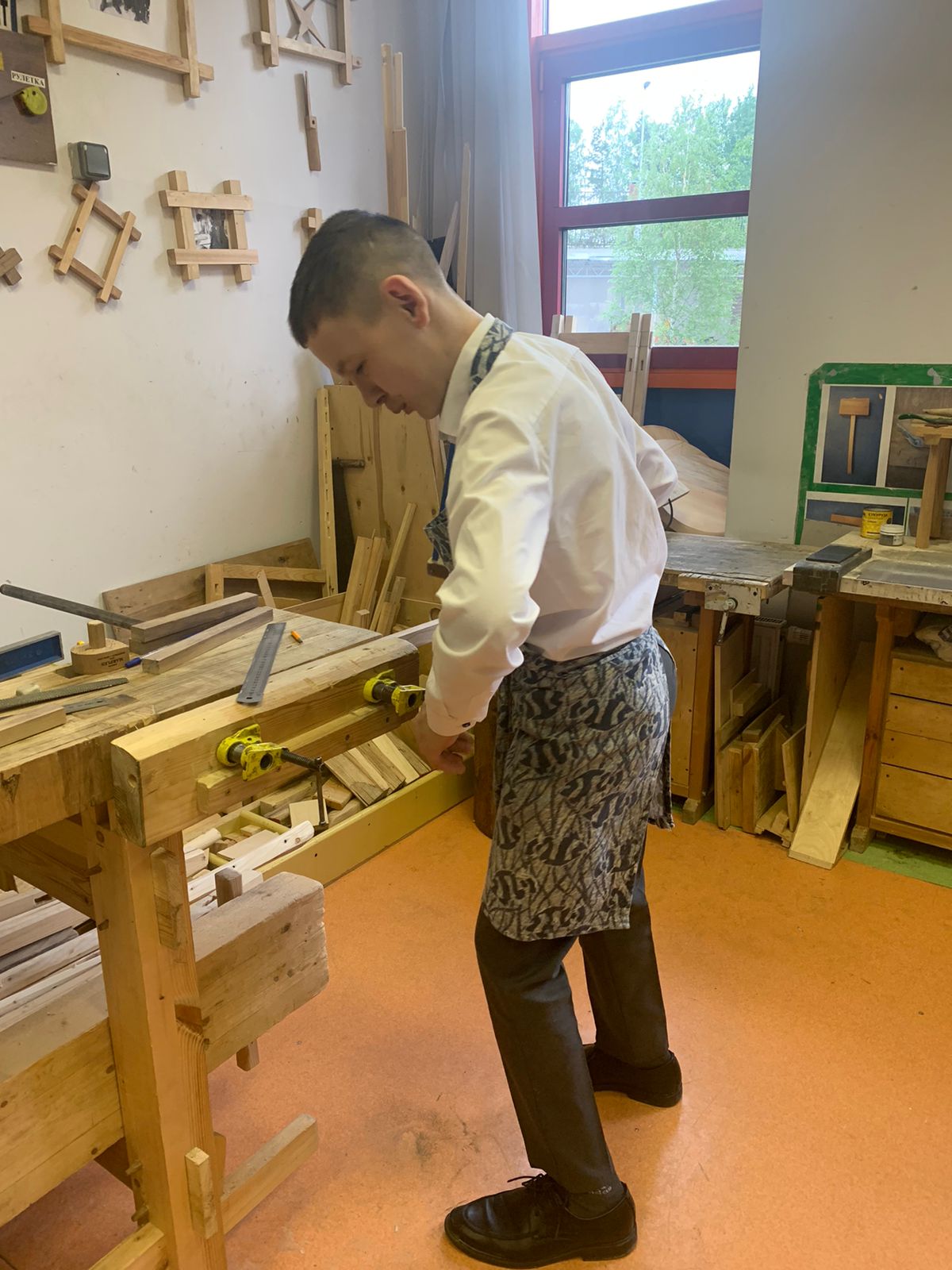 Ребята в этот день очень волновались, потому что это был их первый экзамен, который должен был показать их знания и умения, полученные за годы обучения в школе по профильному труду (у девочек по направлению — швейное дело, у мальчиков — столярное дело).