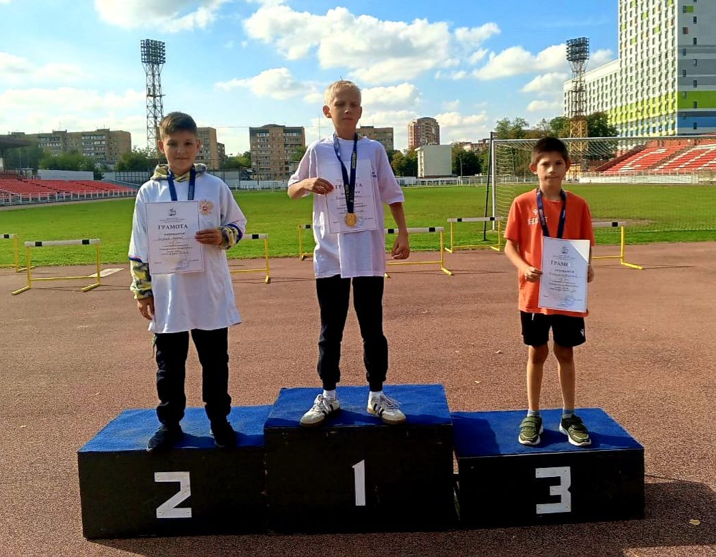Не остался без медали наш самый юный легкоатлет. Бронзовая медаль в прыжке оказалась на шее у Славы К.. Это первая медаль областных соревнований для нашего юного спортсмена.