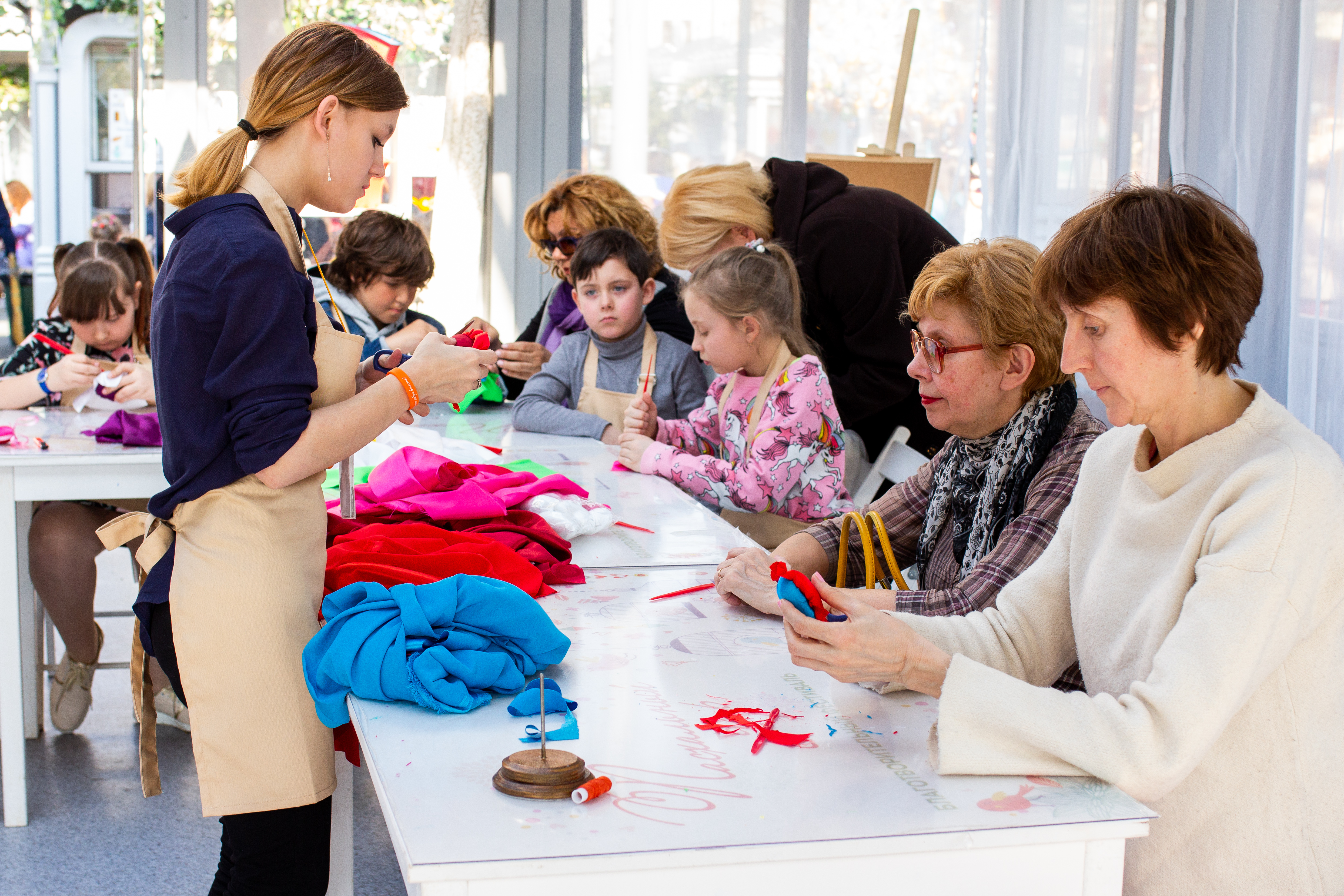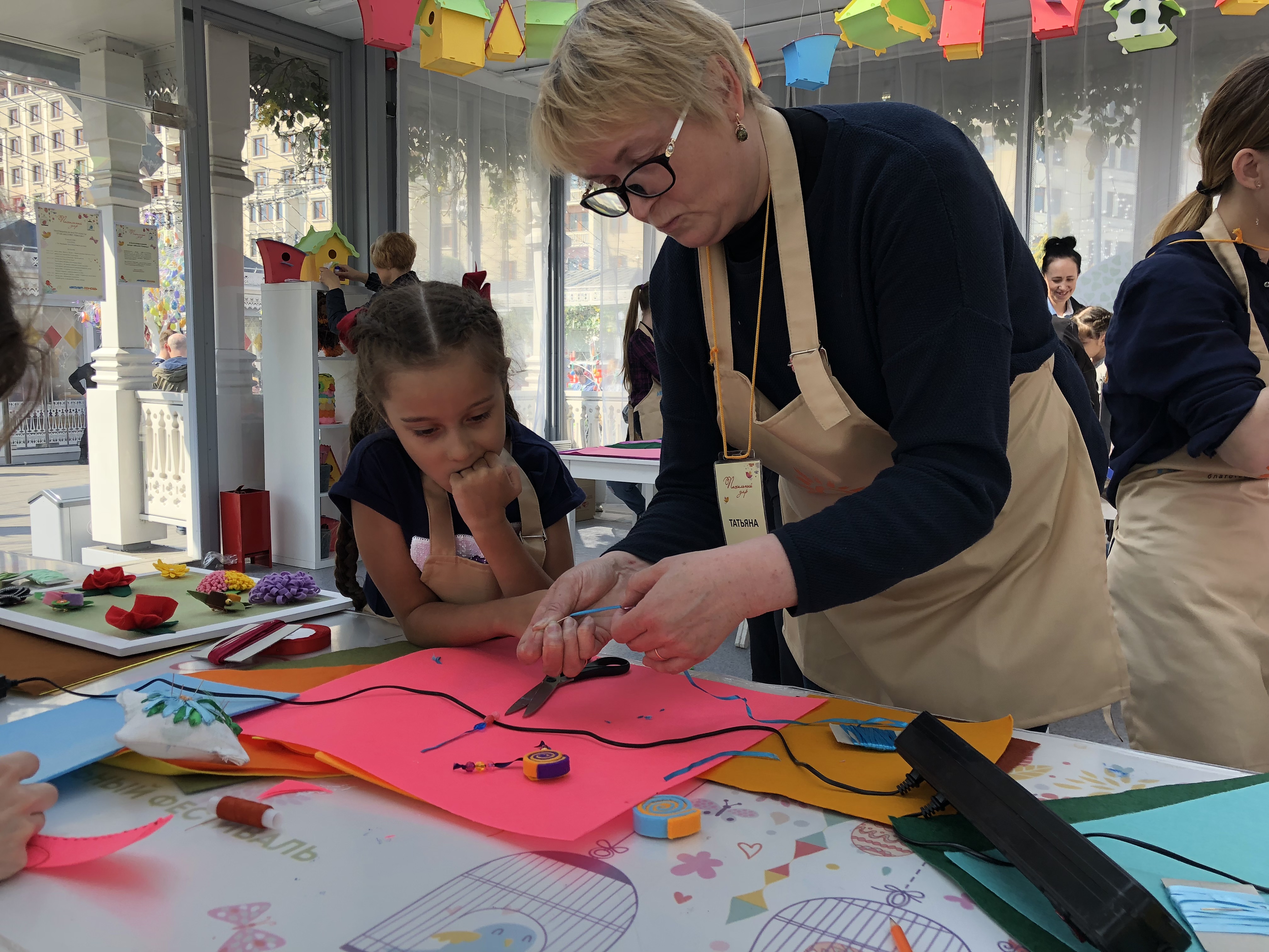 Ребята дружелюбно беседовали с гостями, объясняли, что нужно делать, раздавали сертификаты об участии. День получился насыщенным и ярким. Количество желающих на наши мастер-классы росло с каждым часом. Программа была рассчитана и на детей и на взрослых и вызывала интерес как у тех так и у других. Участники уходили довольные, радостные, с шедеврами, созданными своими руками.