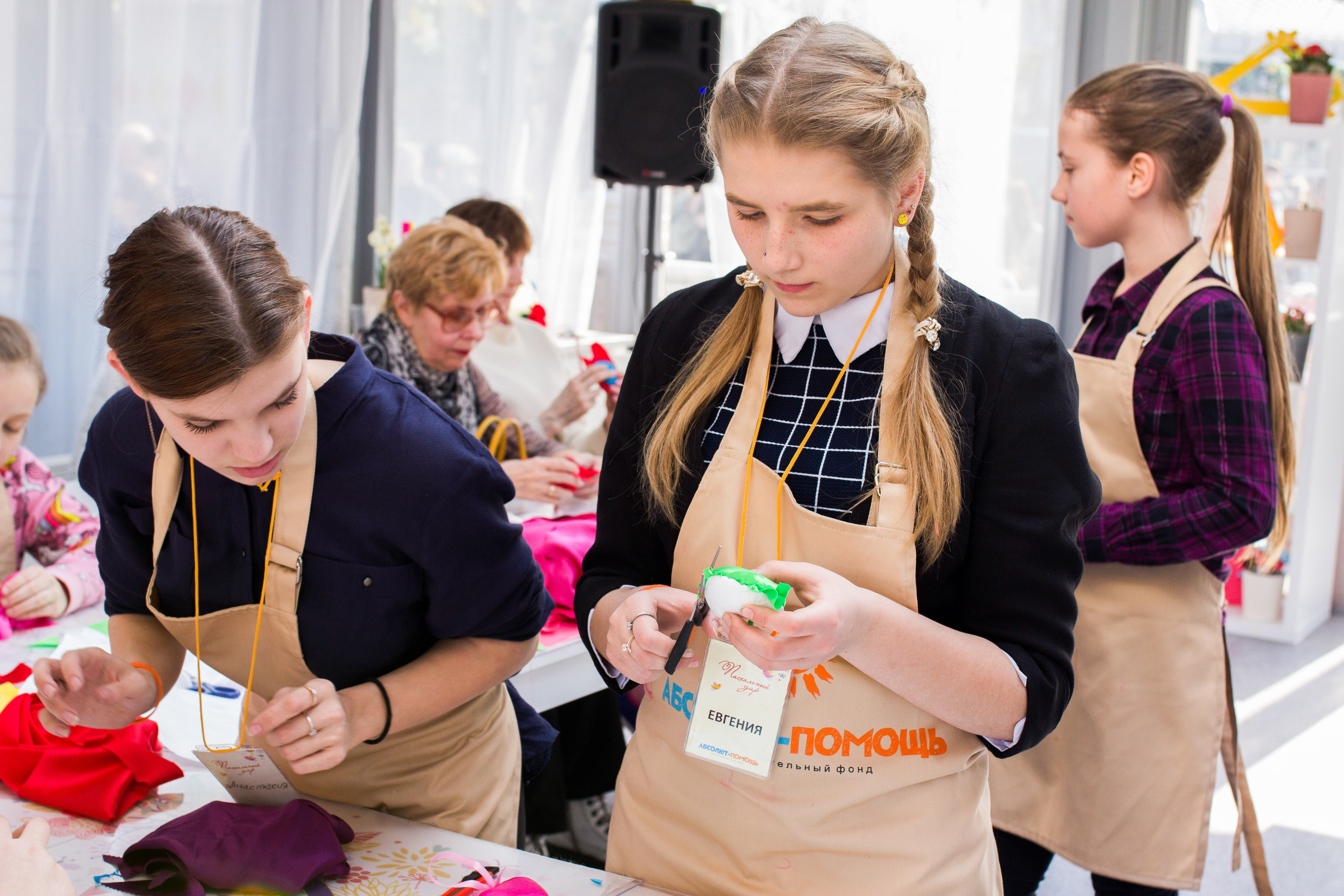 Мы подготовили интересные мастер-классы по изготовлению и украшению сувениров и поделок из дерева, гипса, фетра, бумаги. Каждый желающий мог смастерить оригинальную брошь на пальто, сувенир из гипса, магнит на холодильник, красивую бумажную аппликацию. Занятия проводили педагоги школы "Абсолют", им помогали ученики старших классов школы Настя, Женя, Денис, Алина и Фая.