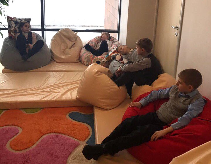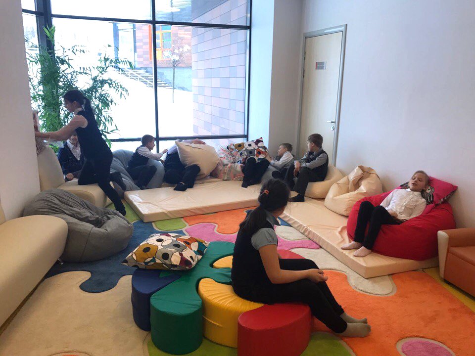 В феврале 2018 в нашей школе для младших школьников создан «Мягкий холл»! Он оборудован мягкими диванами, пуфами, матами, мягкими развивающими модулями. Дополнительный уют придает множество разноцветных подушек и зеленых растений. Ребята очень любят отдыхать в этом уголке, с удовольствием играют, общаются.