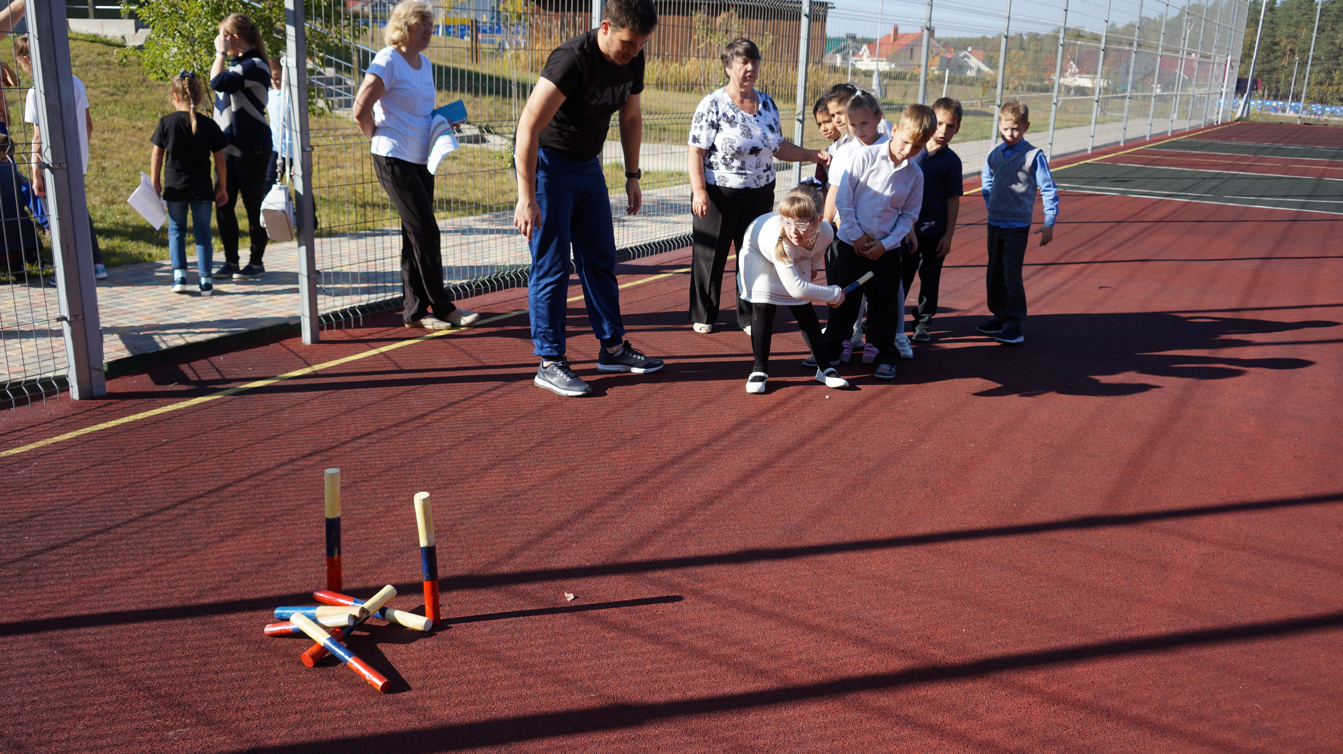 У педагогов появилась замечательная возможность - вспомнить игры своего детства, почувствовать себя молодыми, подвижными, задорными и - самое главное - поделиться своим детством с учениками школы! Вспомнили «Штандер», «Резиночки», «Колдуна», «Городки», «Лапту» и пр.