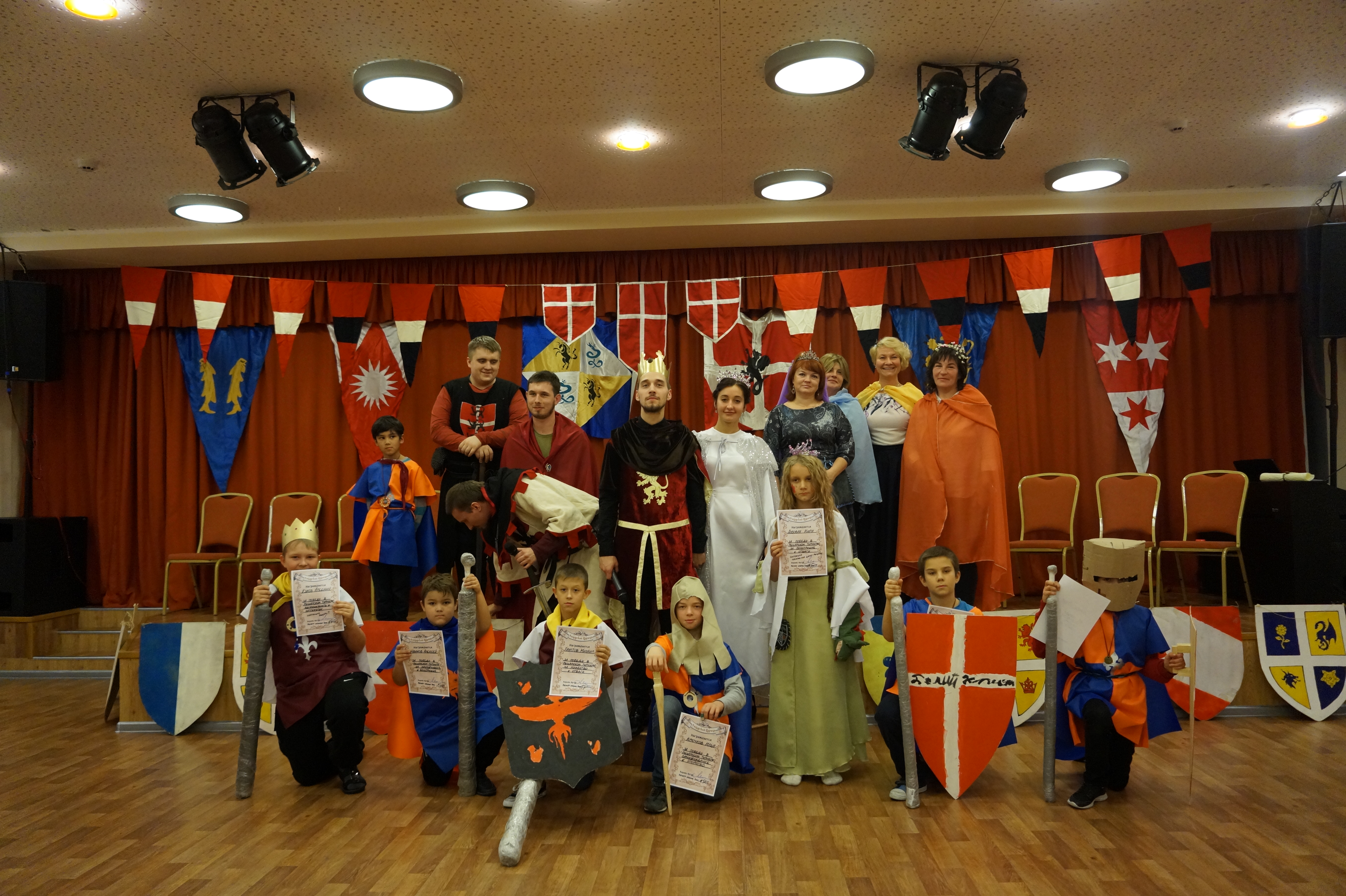Учителя и ребята из разных классов школы создали вместе особое пространство общения, обучения и игры в духе воспитания рыцарских доблестей. Отряды превратились в рыцарские ордена с именем, гербом и девизом. Орден