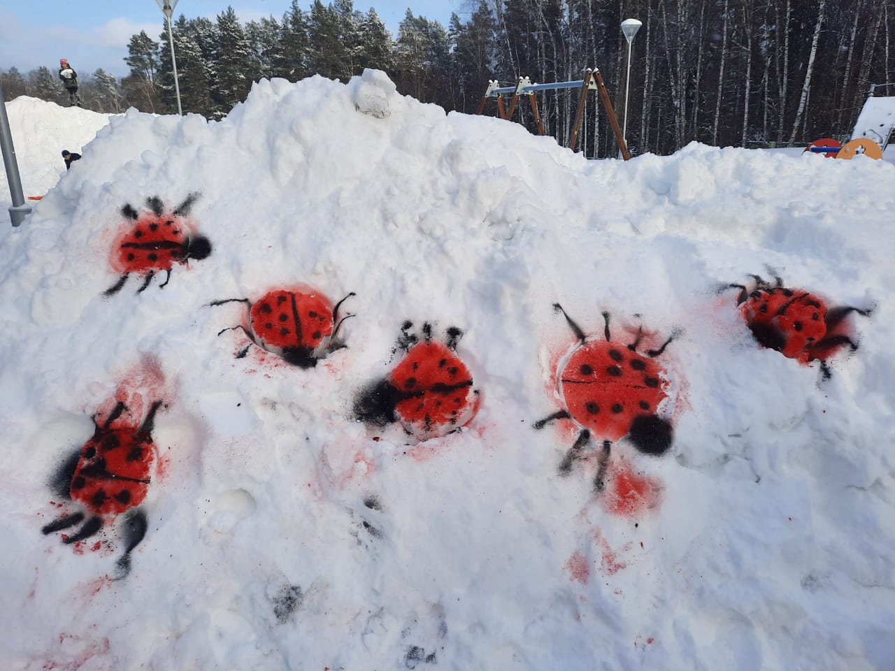 Прошедшие прогулки на неделе особенно запомнились обучающимся из группы продленного дня, где вместе с воспитателями на снегу рисовали божьих коровок. Ребята погрузились в атмосферу творчества, как художник Simon Beck, который создает масштабные рисунки на снегу без кисти и красок. Но наши обучающиеся начали с малого и в процессе обсуждения цветовой гаммы, размера крыльев и кружочков, получились яркие и красочные божьи коровки.