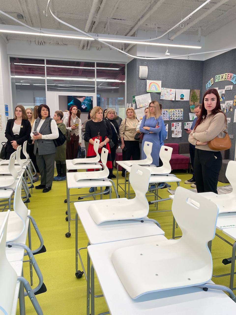 Первой точкой маршрута стала школа АНОО ОЦ ШЛ «Новый взгляд», открывшая свои двери в сентябре 2024 года. Представители школы подробно рассказали о концепции и ключевых принципах работы, поделившись первыми итогами внедрения образовательной модели.