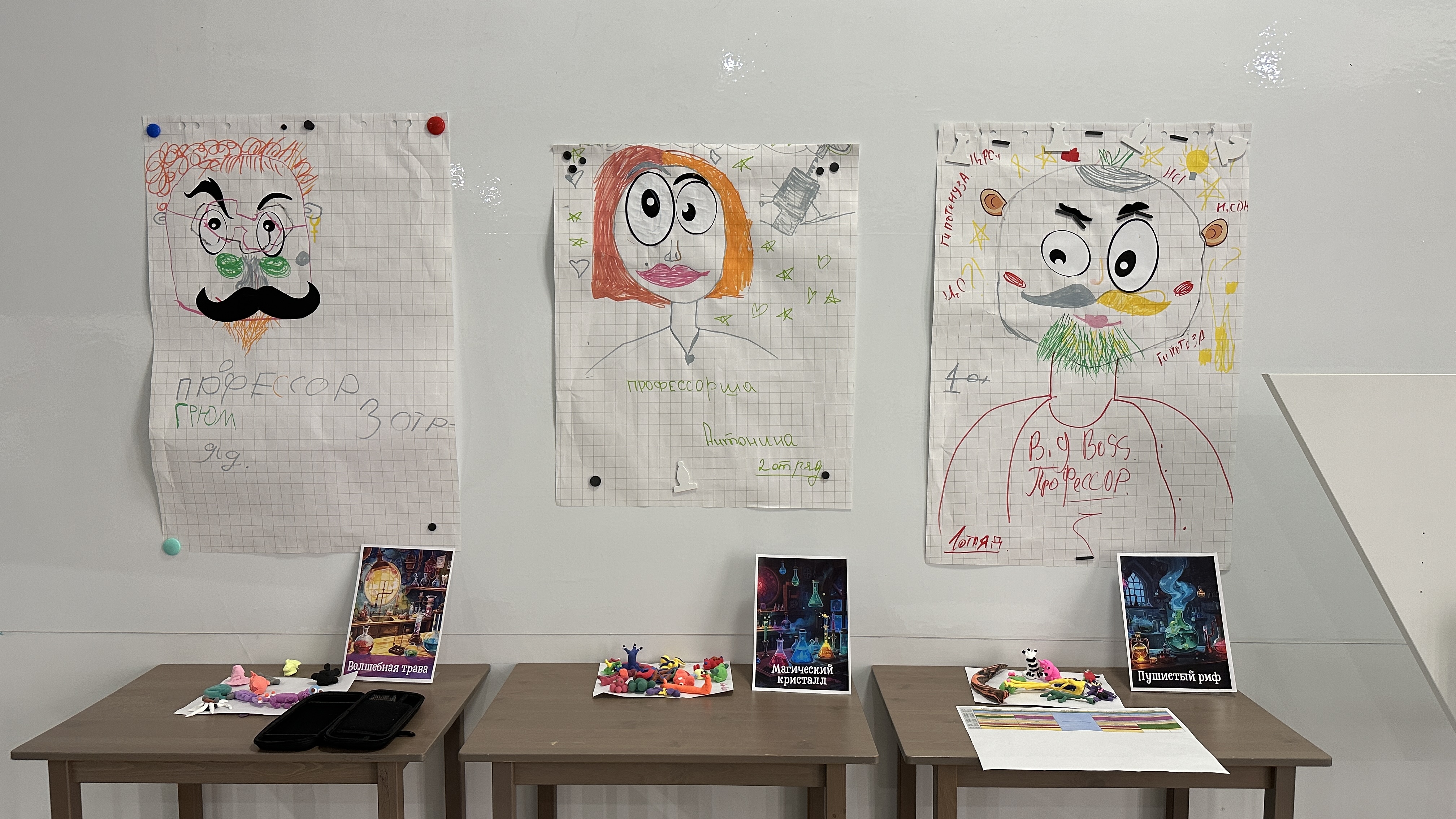 Образ Профессора Мудросвета воплотила Надежда Александровна Чумак, задавая научную логику и структуру происходящего. Роль лаборанта Тяп-Ляпа исполнил Павел Сергеевич Ежеченко, через игровую форму создавая точки включения и развития сюжета. Образ Искринки реализовала педагог-психолог Дарья Вадимовна Калугина, обеспечивая эмоциональную поддержку и вовлечённость участников.